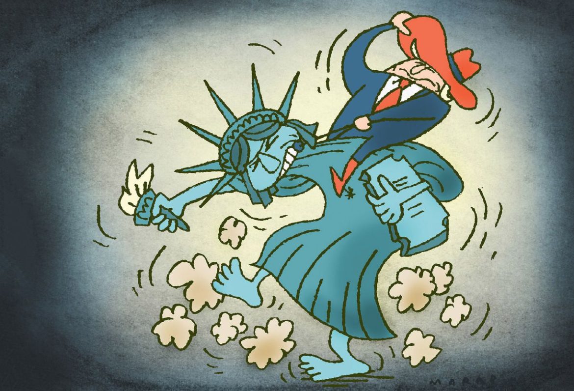 A hatalom gőgje és a helyzet iróniája abban rejlik, hogy az Egyesült Államok intézményi struktúrái az elmúlt évtizedekben olyannyira megbomlottak, hogy az elnök szinte szabadon diszponálhat. Mark Milley tábornok, akit Trump maga nevezett ki 2019-ben, a vezérkari főnökök tanácsának elnökeként figyelmeztetett arra, hogy „nem királyra, királynőre, zsarnokra vagy diktátorra esküszünk”, hanem az alkotmányra és Amerika eszméjére. E szavak mögött egy éles kritika húzódik, amely Trump hatalmi gyakorlatát célozza meg.